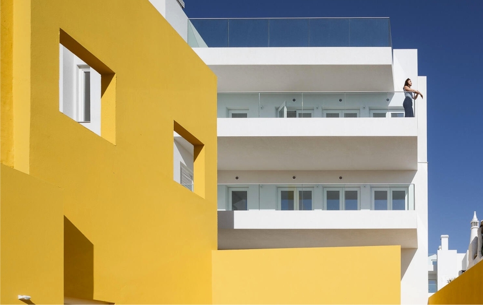 Localizada no centro histórico de Tavira, no sul de Portugal e perto do rio Gilão, encontramos a "Yellow House". O projeto, promovido pela Livin' Tavira e concretizado pelo estúdio de arquitetura NOA, ganhou este nome devido a um edifício de grande destaque, claramente pela sua cor amarela bastante chamativa. O empreendimento conta com um total de 18 apartamentos de luxo, divididos por três prédios. Este luxuoso complexo de apartamentos contrasta vividamente com a paisagem envolvente, um bairro repleto de lojas locais, artesanato, restaurantes e edifícios antigos.